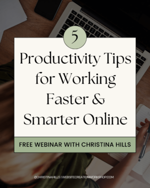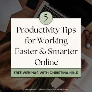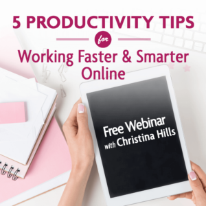DESCRIPTION: Having a website and a business these days means you are on the computer a lot. And it’s important to make the most of the hours you have in a day. Join Christina Hills on this free webinar where she will show you some simple and quick ways to make your life more productive, so you can get things done faster!